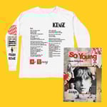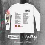 White heavyweight long sleeve T-Shirt with front and sleeve designs.